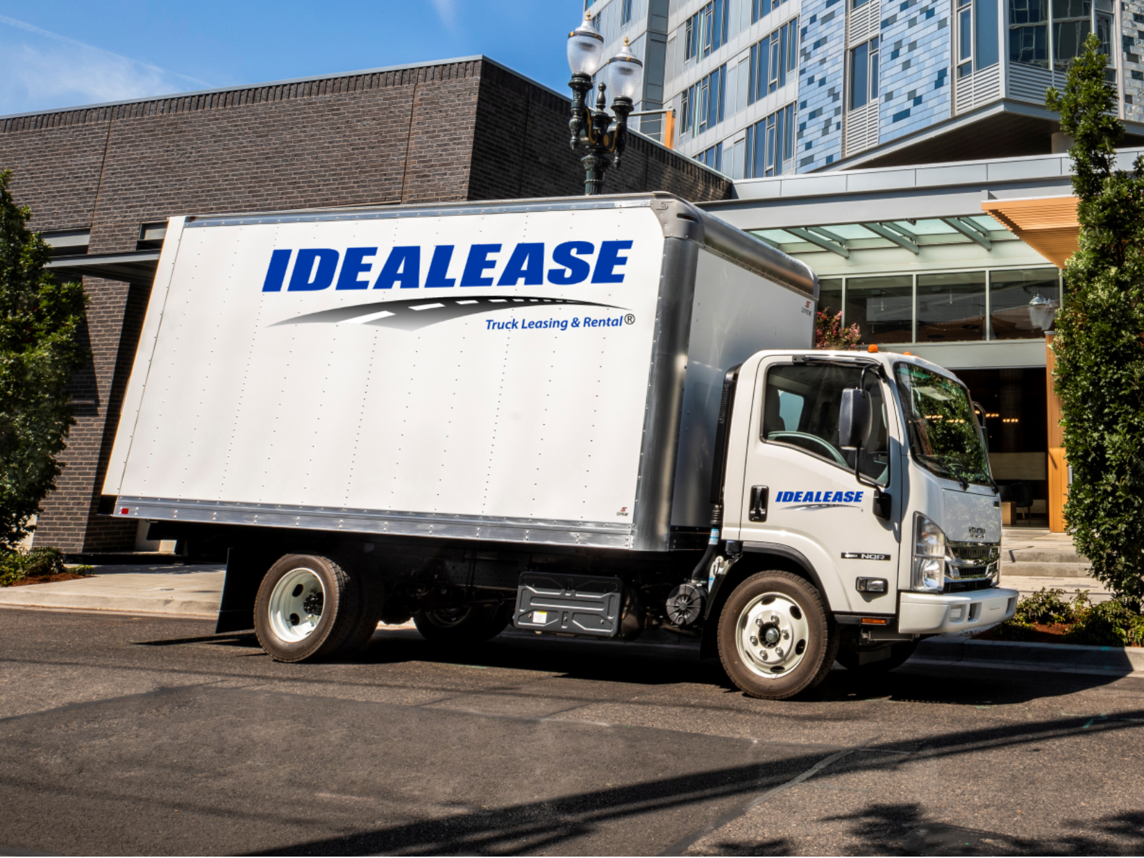 Our 3 ton straight trucks with 20' van body comes equipped with a tailgate. The box is approximately 8' high, 8' wide, has a translucent roof and a rear roll up door.